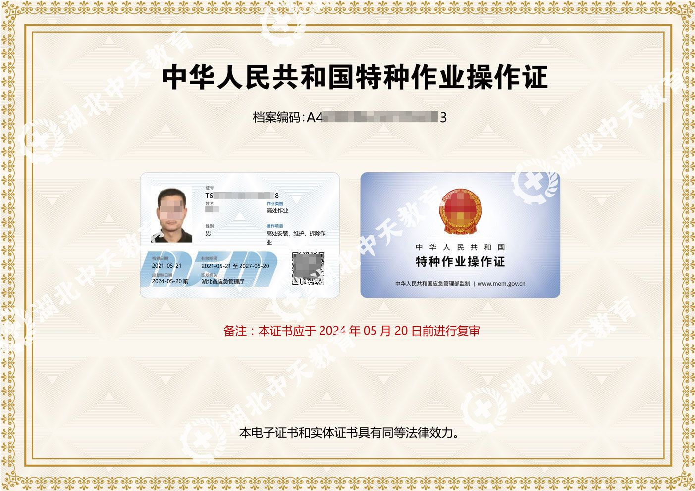 高处安装、维护、拆除作业证样式: >>>>>>点击进入 在线报名>>>>>>